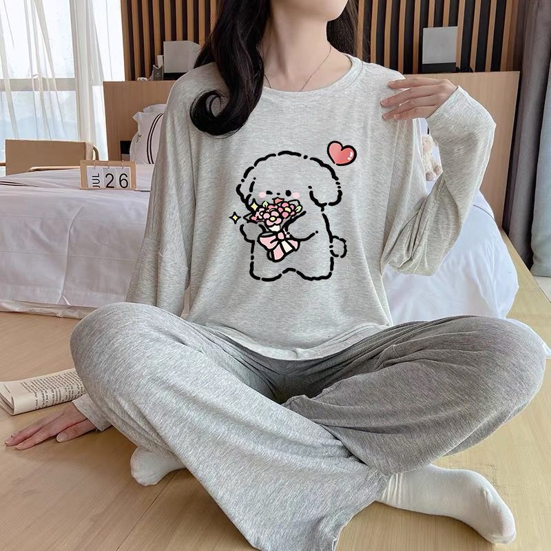 芬腾女士睡衣春秋季新款棉质抗菌防螨长袖套装卡通可爱休闲家居服