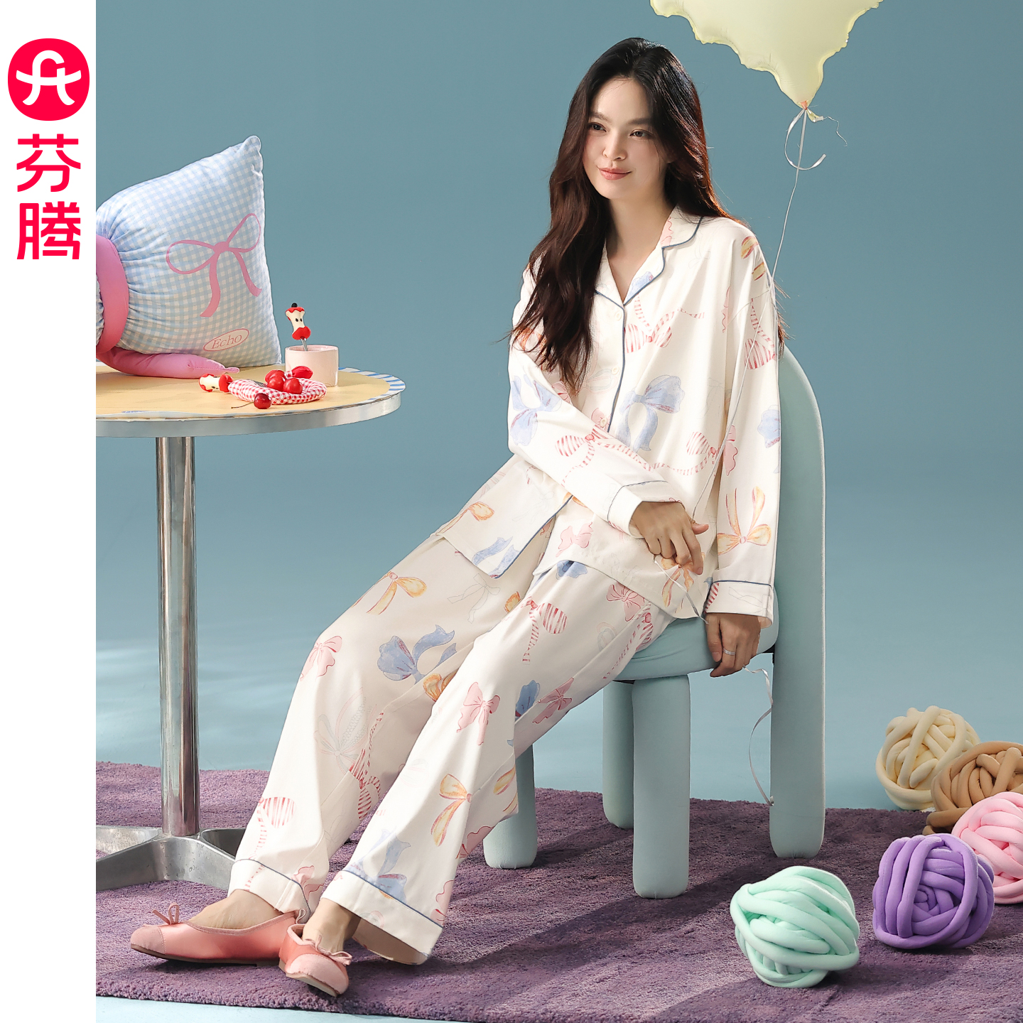 芬腾女士睡衣春秋季棉质开衫长袖套装女款时尚休闲甜美抗菌家居服