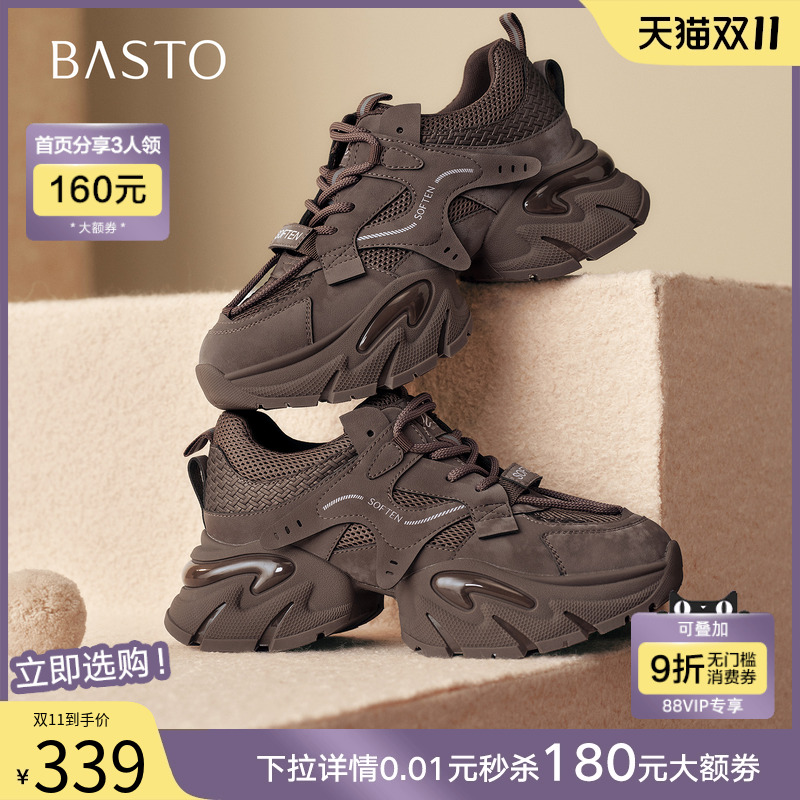 百思图2025秋冬新款加绒保暖老爹鞋厚底增高女运动休闲鞋G8897AM6