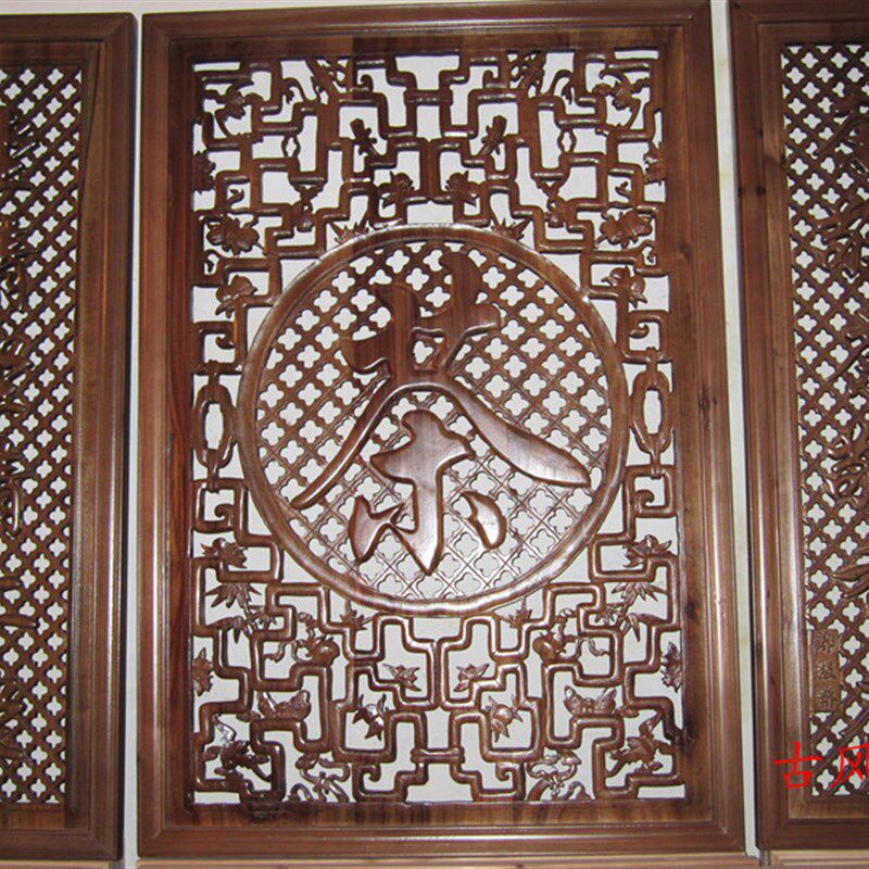 东阳木雕仿古门窗中式隔断屏风背景墙装饰玄关镂空雕花板实木花格