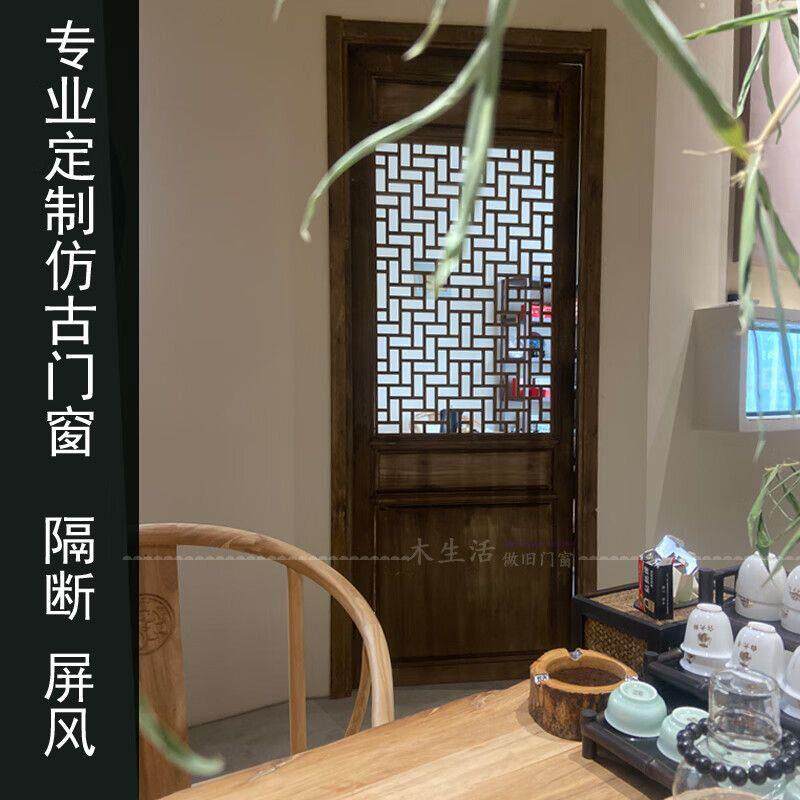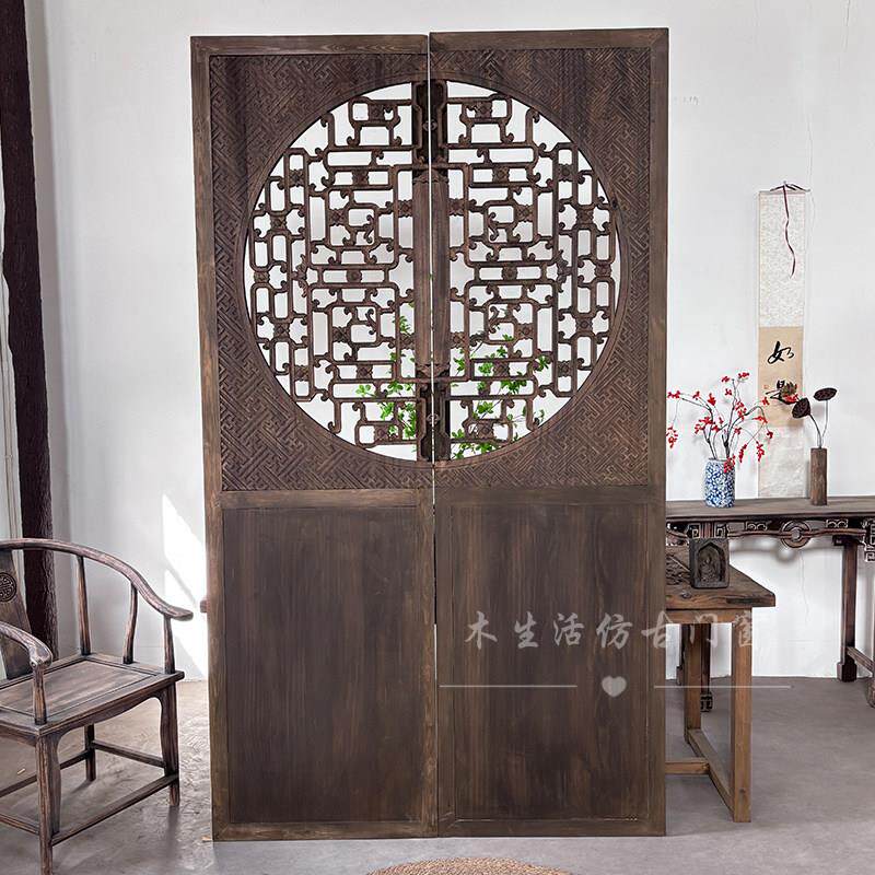 沁殿实木彷古门窗花格镂空做旧中式隔断雕花大门屏风隔断定制 款1