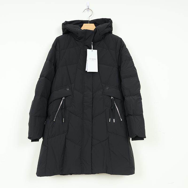 - 羽绒服女中长款黑色