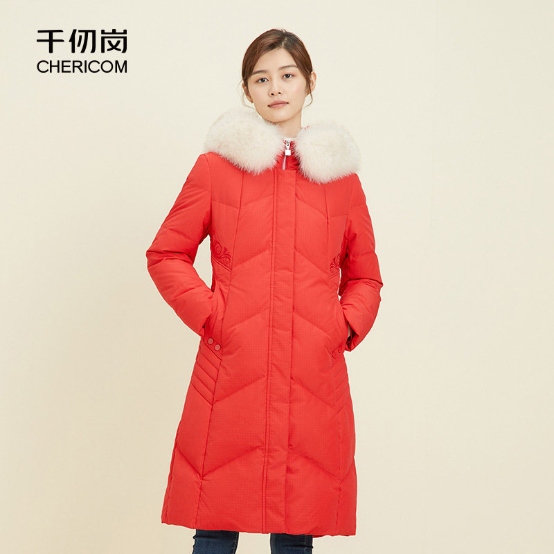 - 羽绒服 女 中长款 狐狸毛领