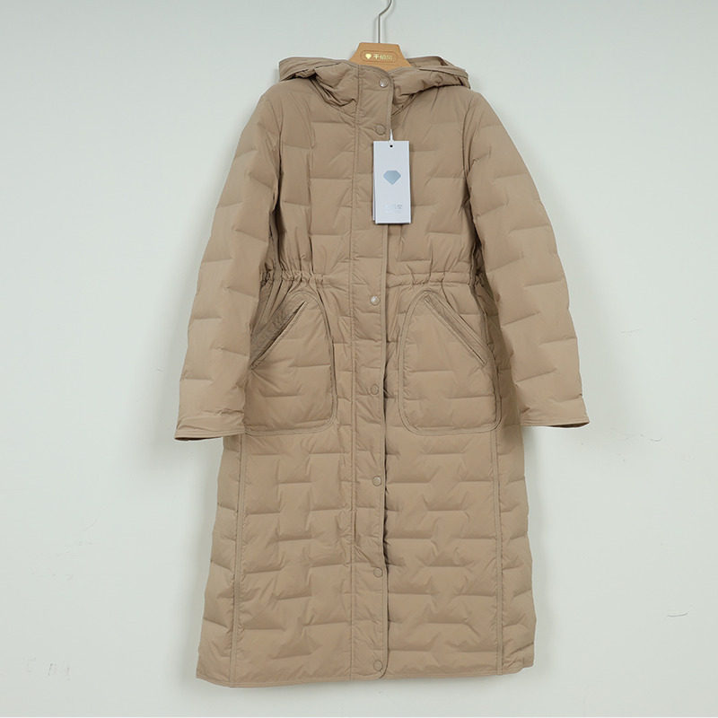 - 长款收腰羽绒服女修身