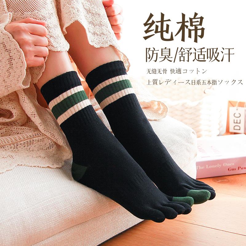 五指袜女纯棉春秋款季袜子中长筒袜女士全棉袜防臭分脚趾学生女袜
