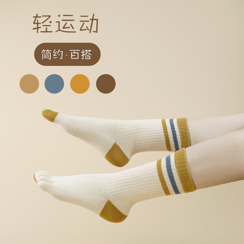 五指袜女纯棉美拉德秋冬季中筒防臭吸汗透气高腰运动全棉女士长袜