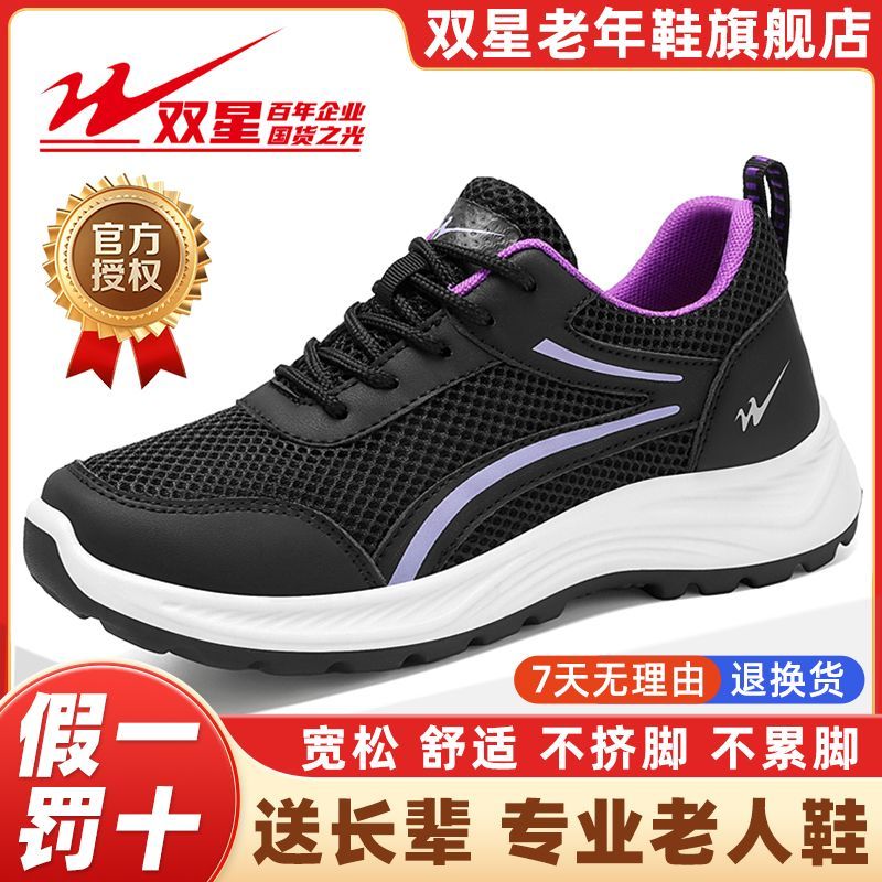 双星老人健步鞋女中老年夏季透气健步鞋妈妈网面鞋软底防滑运动鞋