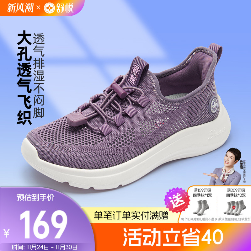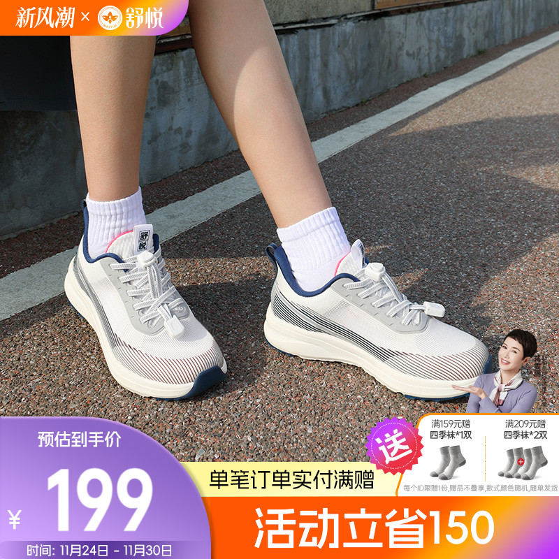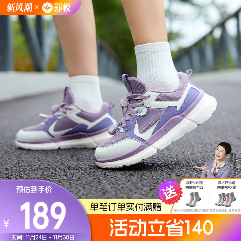 舒悦老人健步鞋女款妈妈鞋防滑软底老年轻便舒适运动春秋官方正品