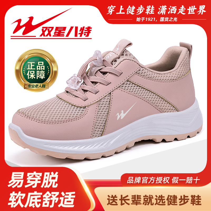 双星八特老人健步鞋女软底防滑妈妈休闲运动鞋春秋款网面透气女鞋
