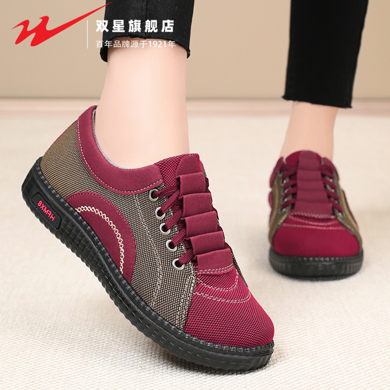 双星老人健步鞋女春秋款老北京布鞋防滑软底舒适中老年休闲妈妈鞋