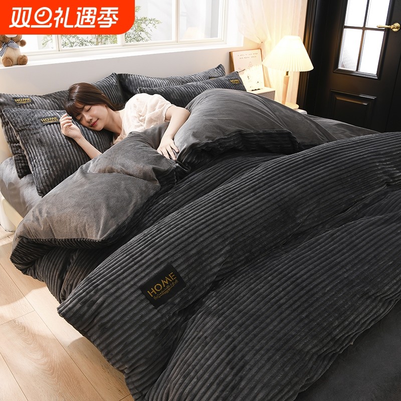 无印良品牛奶绒床上四件套被套冬季加厚珊瑚绒被芯套加绒冬天床品