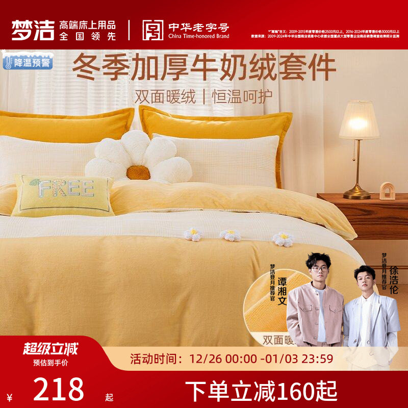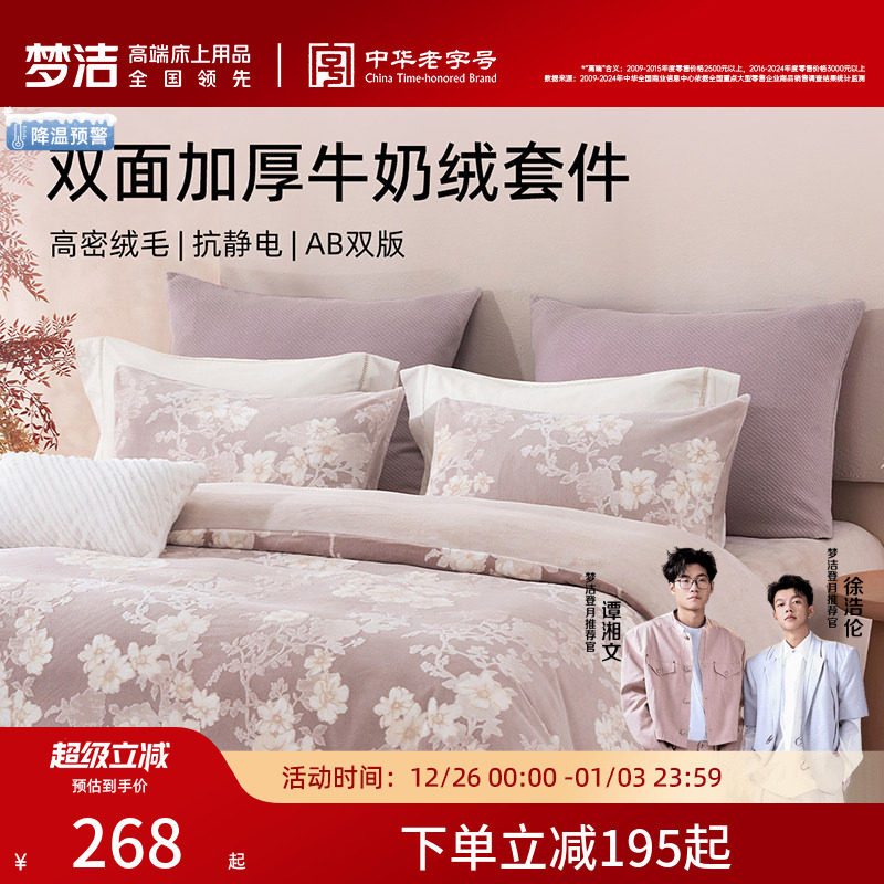 梦洁牛奶绒床上三四件套加绒2025加厚床单被套冬法兰绒珊瑚绒床品