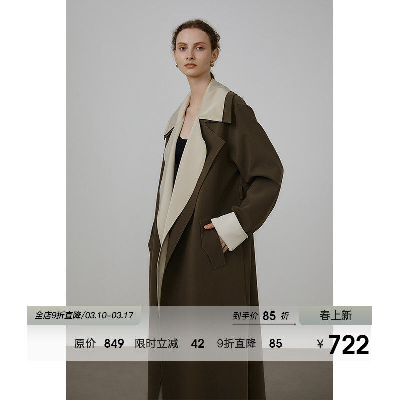 UNSPOKEN撞色风衣外套女春装2026设计感小众高级感假两件长款大衣