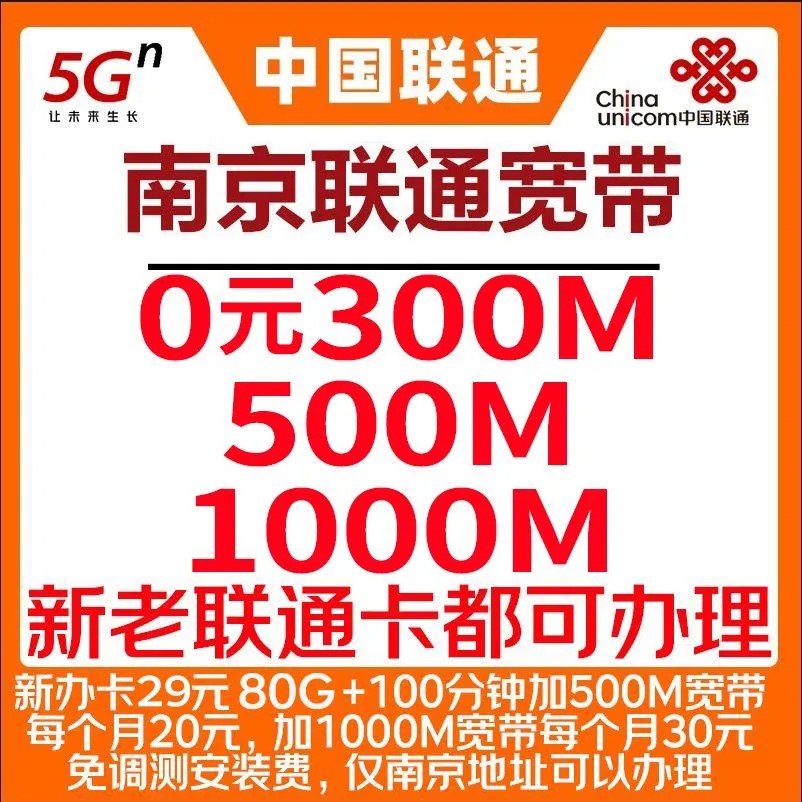 江苏宽带南京联通新装免费上门办理单宽免排队融合宽带光纤套餐装