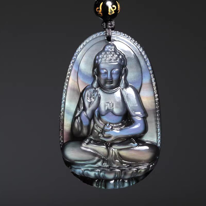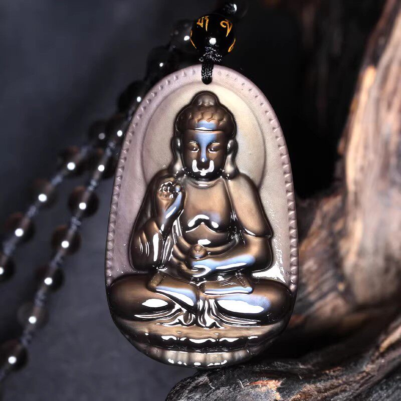 - 黑曜石本命佛吊坠 天然