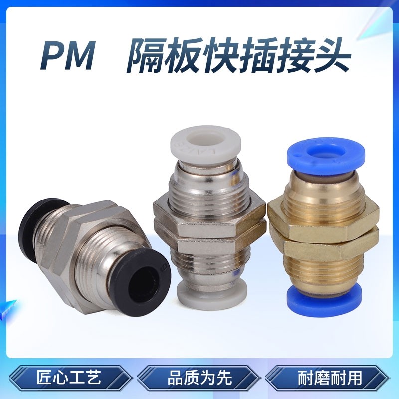 速发快速接头PM隔板直通接头塑/气动气管穿板快插接头4料6/8/10/1