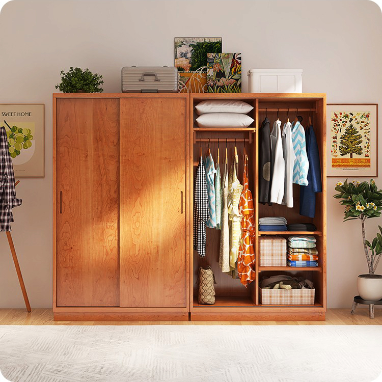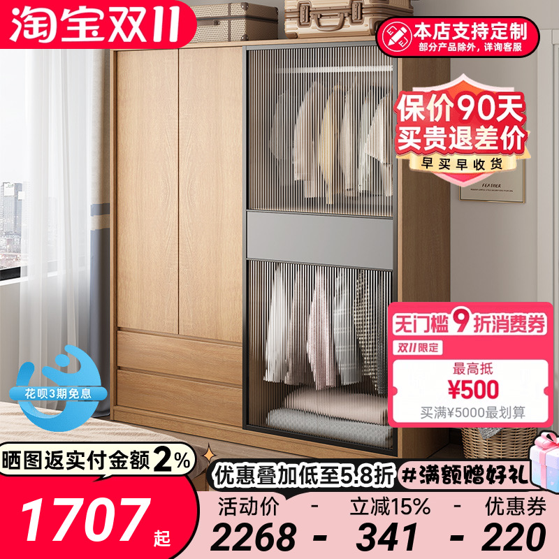 国补实木推拉门衣柜新款2025爆款现代简约家用主卧原木收纳大衣橱