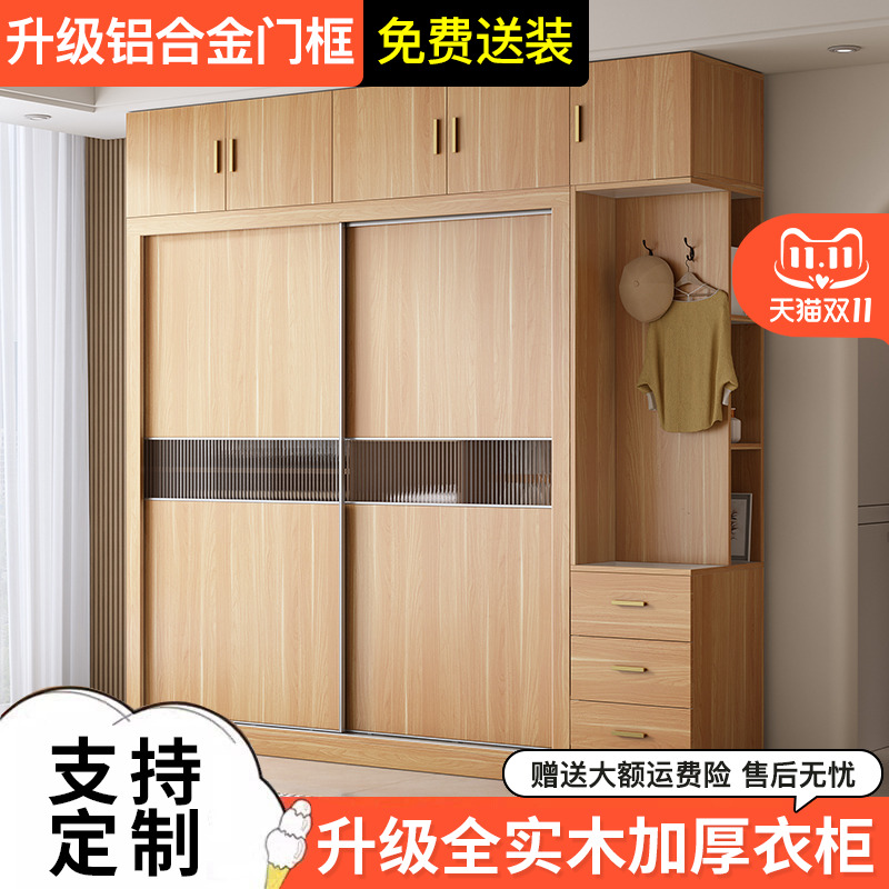 全实木衣柜家用卧室推拉门出租房经济型现代风柜子定制收纳大衣橱