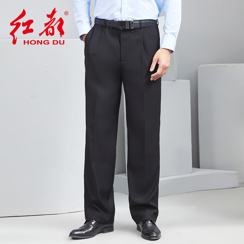红都秋冬新款男士西裤单褶宽松西装裤商务高腰中年职业直筒男装裤