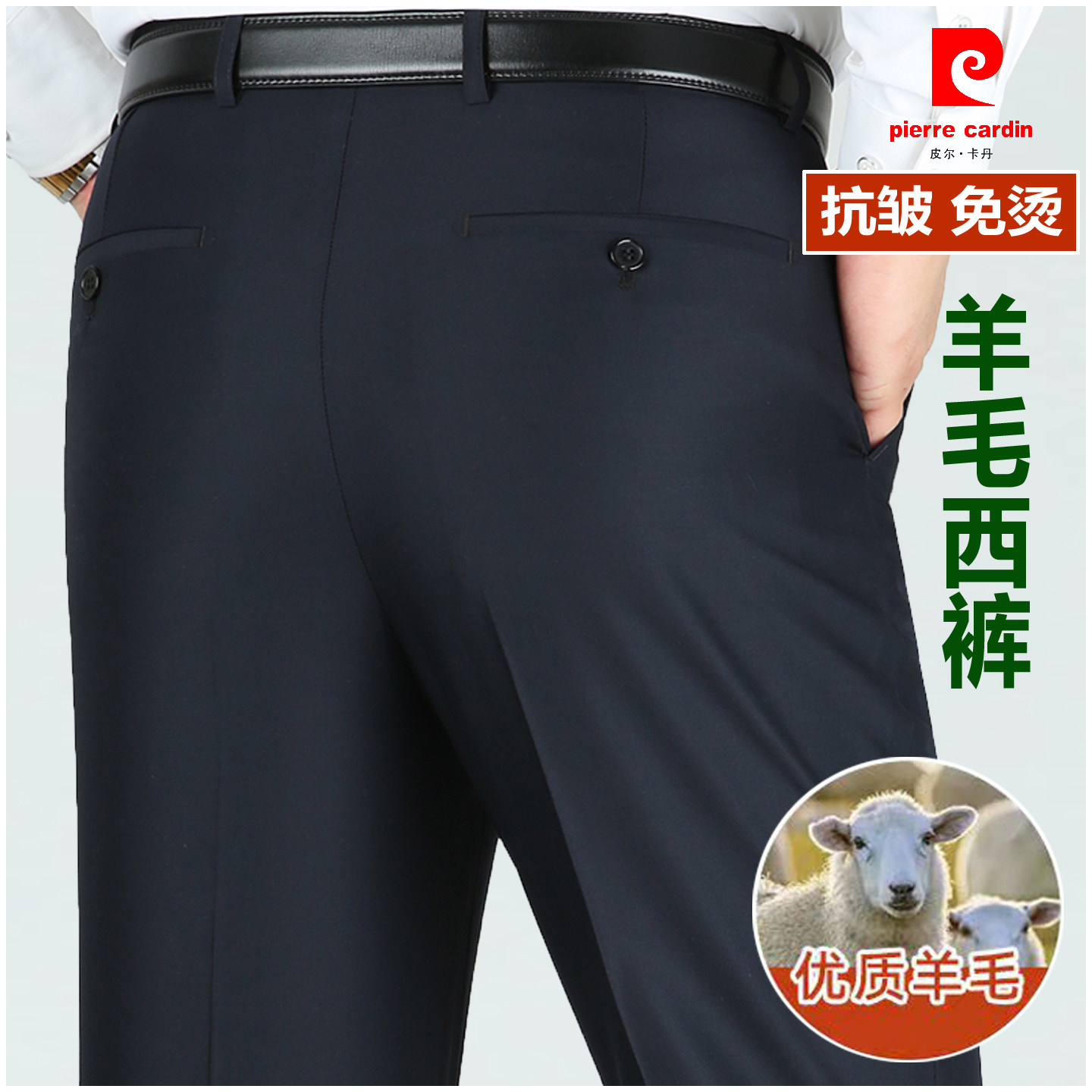 正品皮尔卡丹毛料西裤男中年秋冬厚款宽松直筒免烫高腰爸爸西装裤