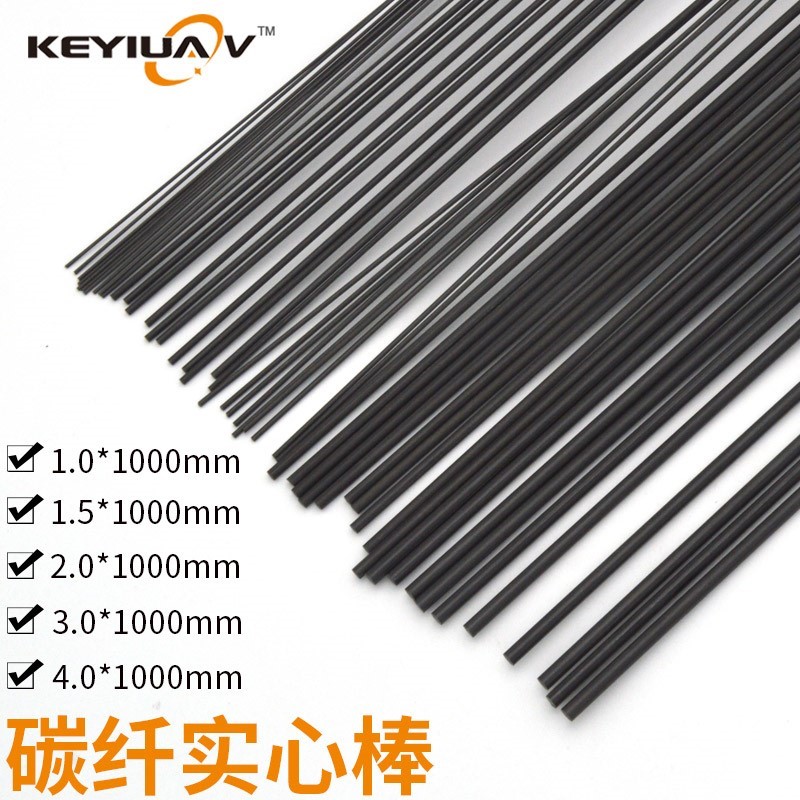 航模实心碳纤维棒 1 1.5 2 3 4mm 碳杆碳棒 固定翼机翼机身加强