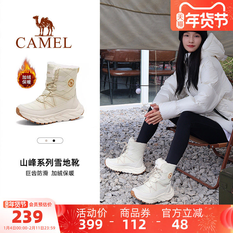 骆驼雪绒户外雪地靴女款新款冬季厚底登山靴子防寒加绒保暖徒步鞋