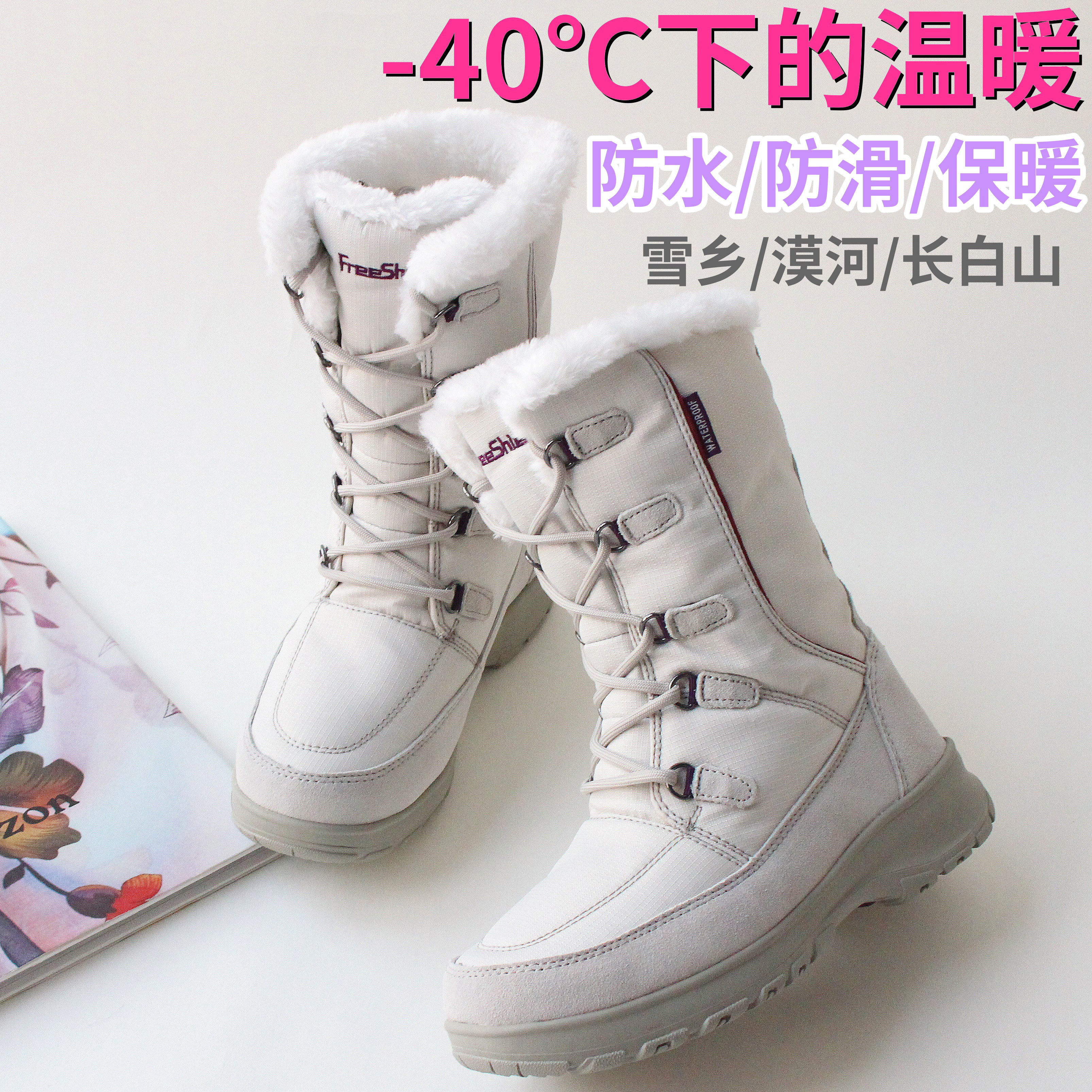 东北户外雪地靴女防水防滑中筒加绒加厚雪鞋雪乡漠河长白山哈尔滨