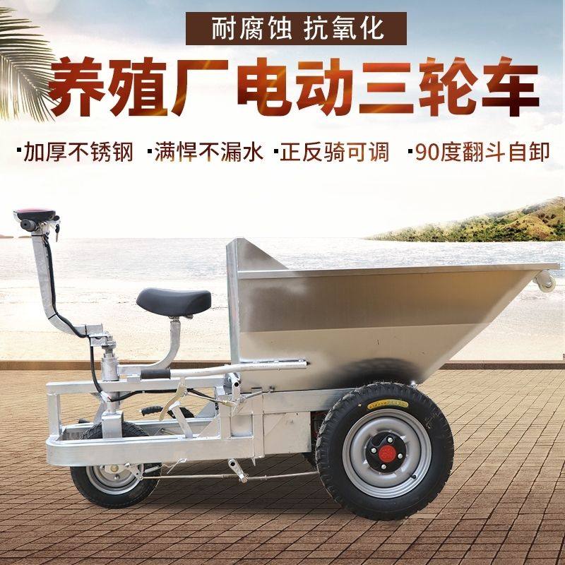 新款正反骑不锈钢清粪车工地机械自卸翻斗电动三轮车拉粪车养殖场