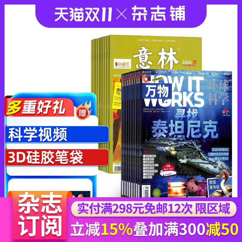 万物+意林杂志组合 2026年一月起订 全年订阅共36期 杂志铺 杂志订阅 青少版科普百科书籍自然科学历史人文 中文版科学