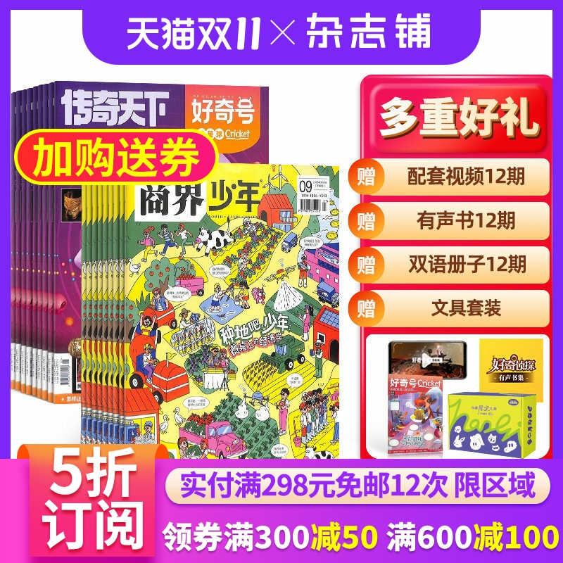 【包邮】商界少年+好奇号杂志组合 2026年1月起订 1年共24期 杂志铺 自然科学历史人文商业财经中英双语阅读少儿科普期刊
