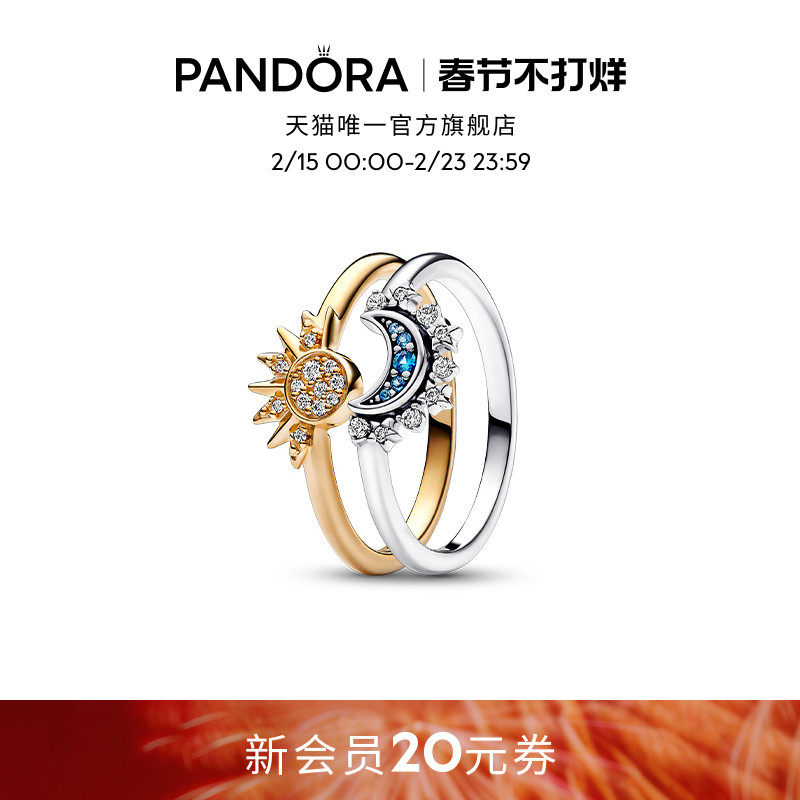 [情人节礼物]Pandora潘多拉日月同辉戒指套装叠戴个性情侣对戒