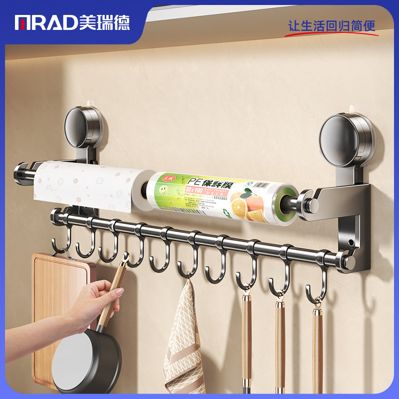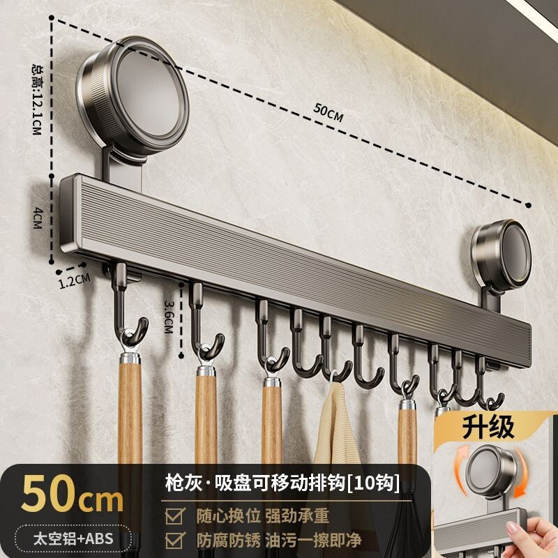厨房挂钩吸盘置物架免打孔挂杆锅铲刀架锅盖一体挂架壁挂排钩收纳