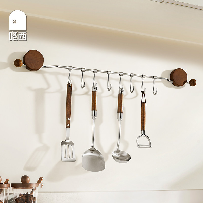 咚西厨房挂钩吸盘免打孔胡桃木壁挂多功能置物架锅铲勺子收纳挂架