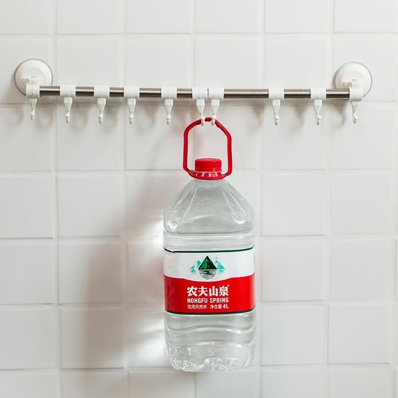 不锈钢厨房挂钩吸盘式免打孔一排式墙上滑轨挂钩厨房专用收纳挂勾