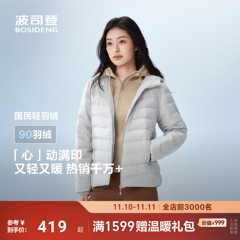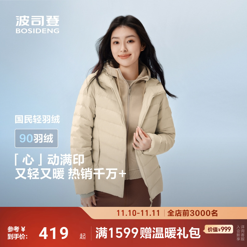 [小蛮腰2.0]波司登25新款云感收腰保暖轻薄羽绒服鹅绒外套连帽女