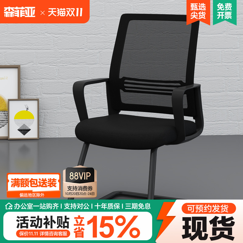 电脑椅家用办公椅舒适久坐网布椅子护腰靠背椅会议椅会客椅四脚椅