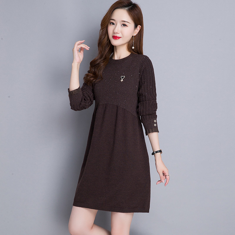 春秋季毛衣裙中长款毛衣女大码胖mm秋冬内搭针织打底衫连衣裙线衣