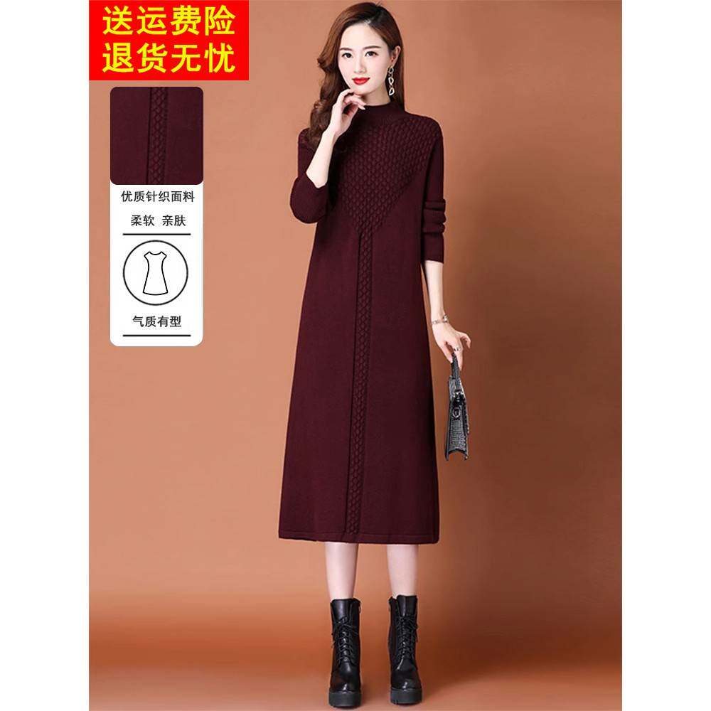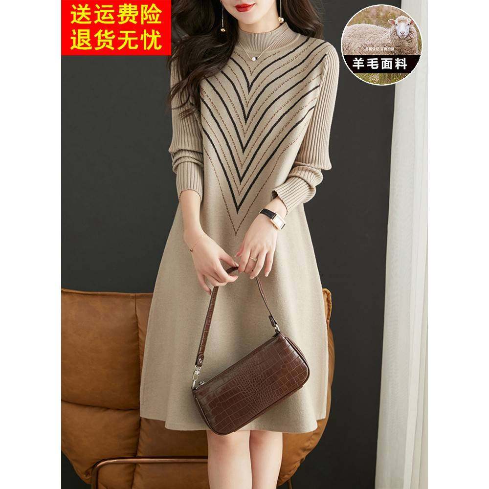 秋冬季新款羊毛连衣裙女针织打底高端毛衣裙中长款宽松大码配大衣