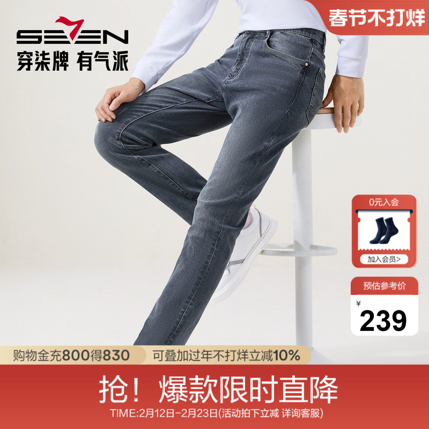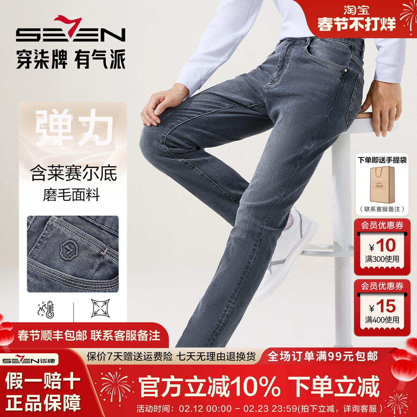 【高弹】柒牌男装含莱赛尔牛仔裤2025冬季新品保暖修身潮流男裤
