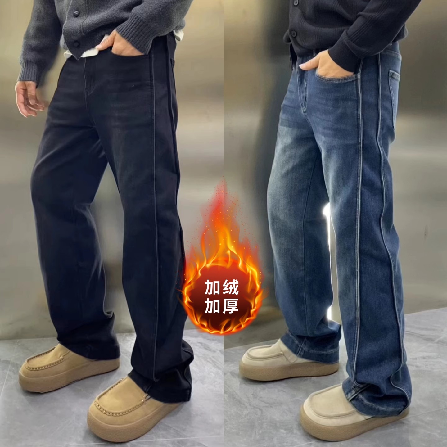 - 牛仔裤男加绒