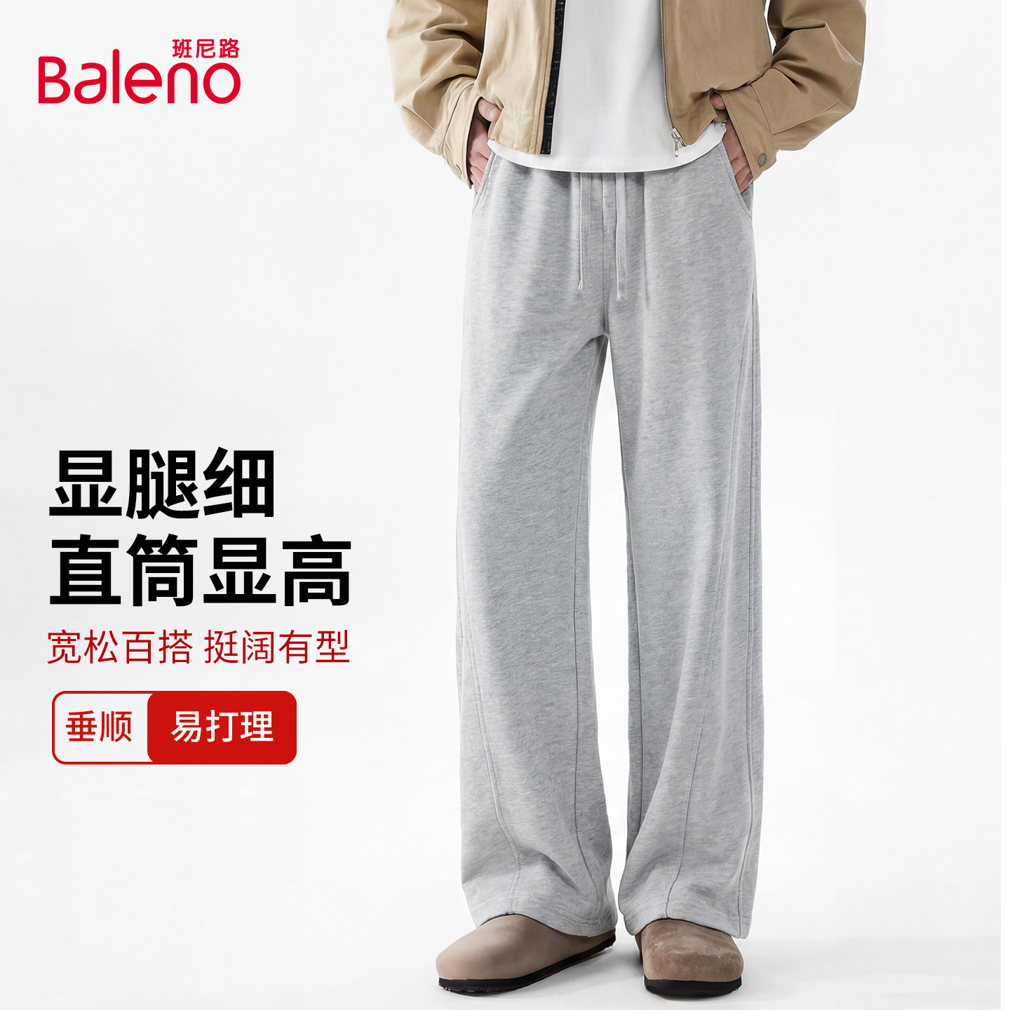 班尼路S&K休闲裤子男款春季宽松直筒卫裤青少年灰色运动潮流男裤A