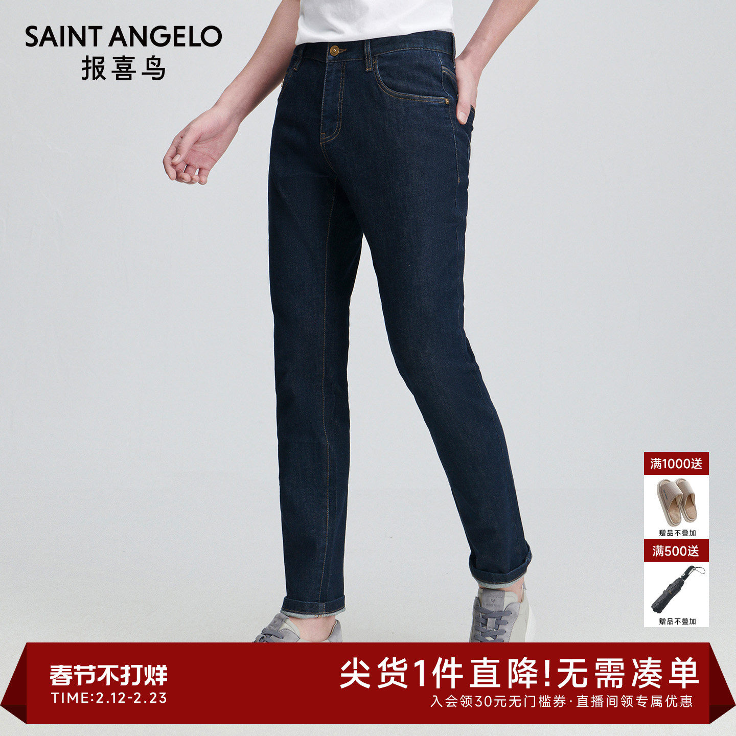 报喜鸟春季新款男士时尚休闲牛仔裤修身小脚裤子百搭潮流男裤蓝色