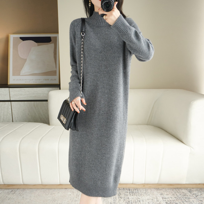 - 秋冬新款韩版懒庸中长款宽松套头针织毛衣女加厚长袖打底线衫外套