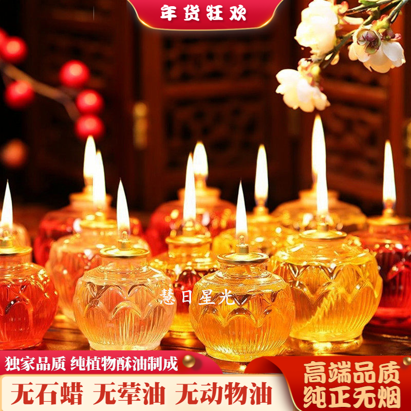 酥油灯长明灯供佛灯环保无烟油灯植物液体酥油食用佛灯油供佛灯油