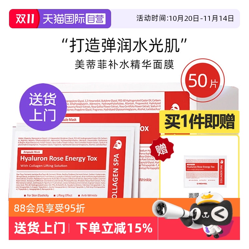 【自营】韩国美蒂菲玫瑰面膜50片女补水保湿软膜官方正品贴片面膜