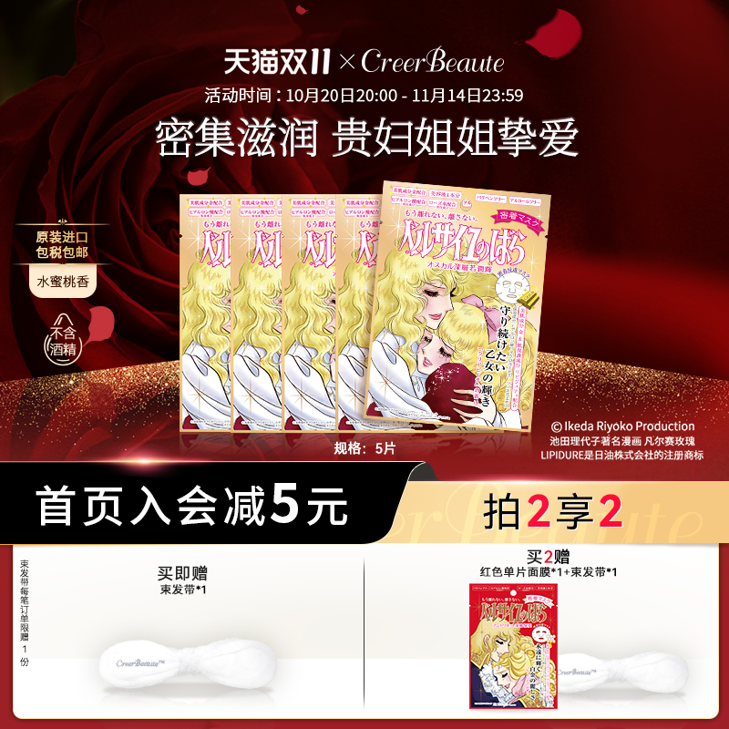 【店铺推荐】creerbeaute凡尔赛玫瑰面膜补水保湿舒缓金红各10片