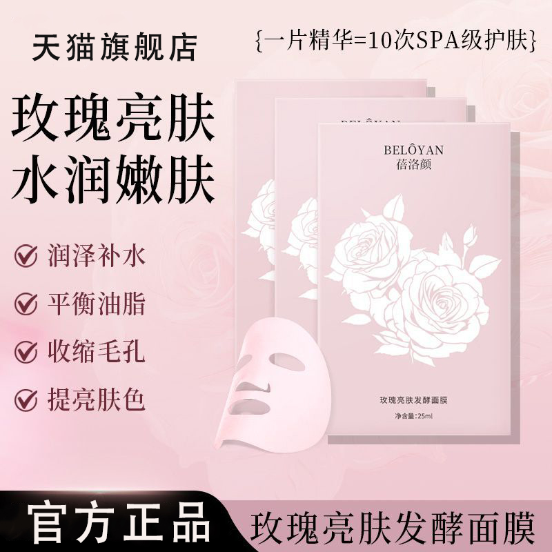【纯天然0防腐】必扬玫瑰亮肤发酵面膜舒缓亮白保湿紧致贴片面膜