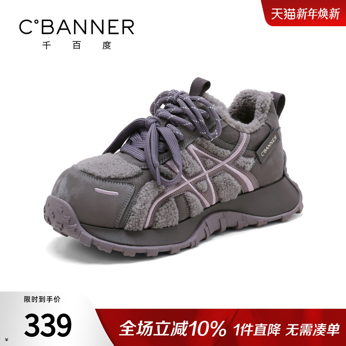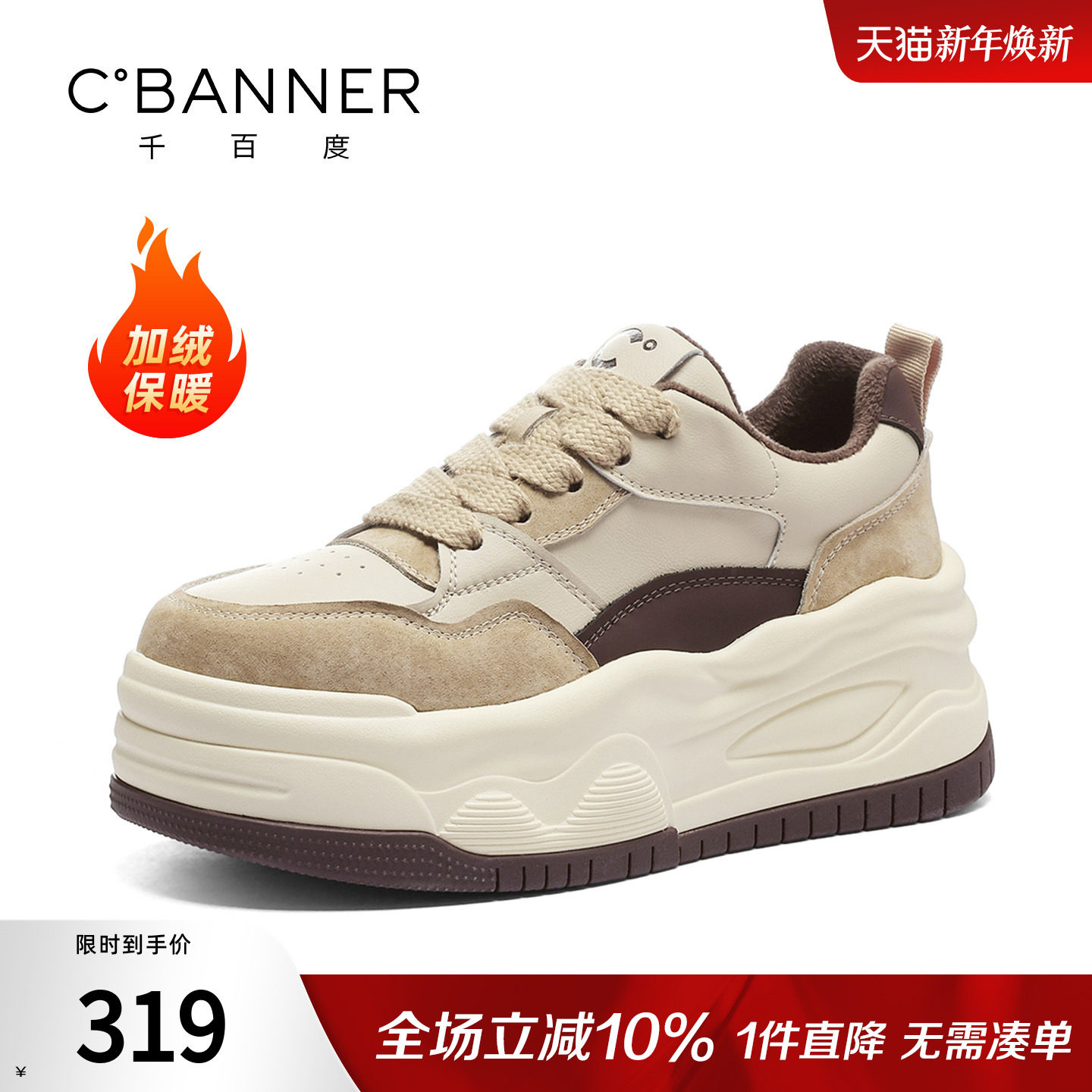 千百度加绒阿甘休闲鞋女冬季2025新款厚底老爹鞋德训鞋百搭运动鞋