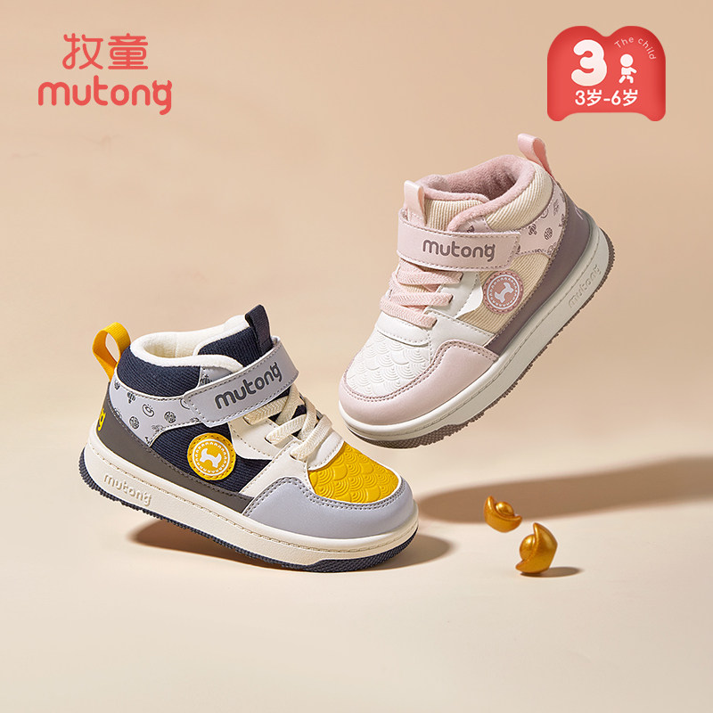 牧童儿童板鞋男童冬季轻便缓震小高帮童鞋加绒保暖女童鞋休闲棉鞋