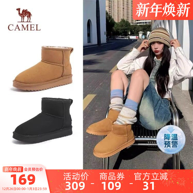 骆驼女鞋2025冬季新款加绒保暖雪地靴女款加厚东北棉鞋休闲短靴子